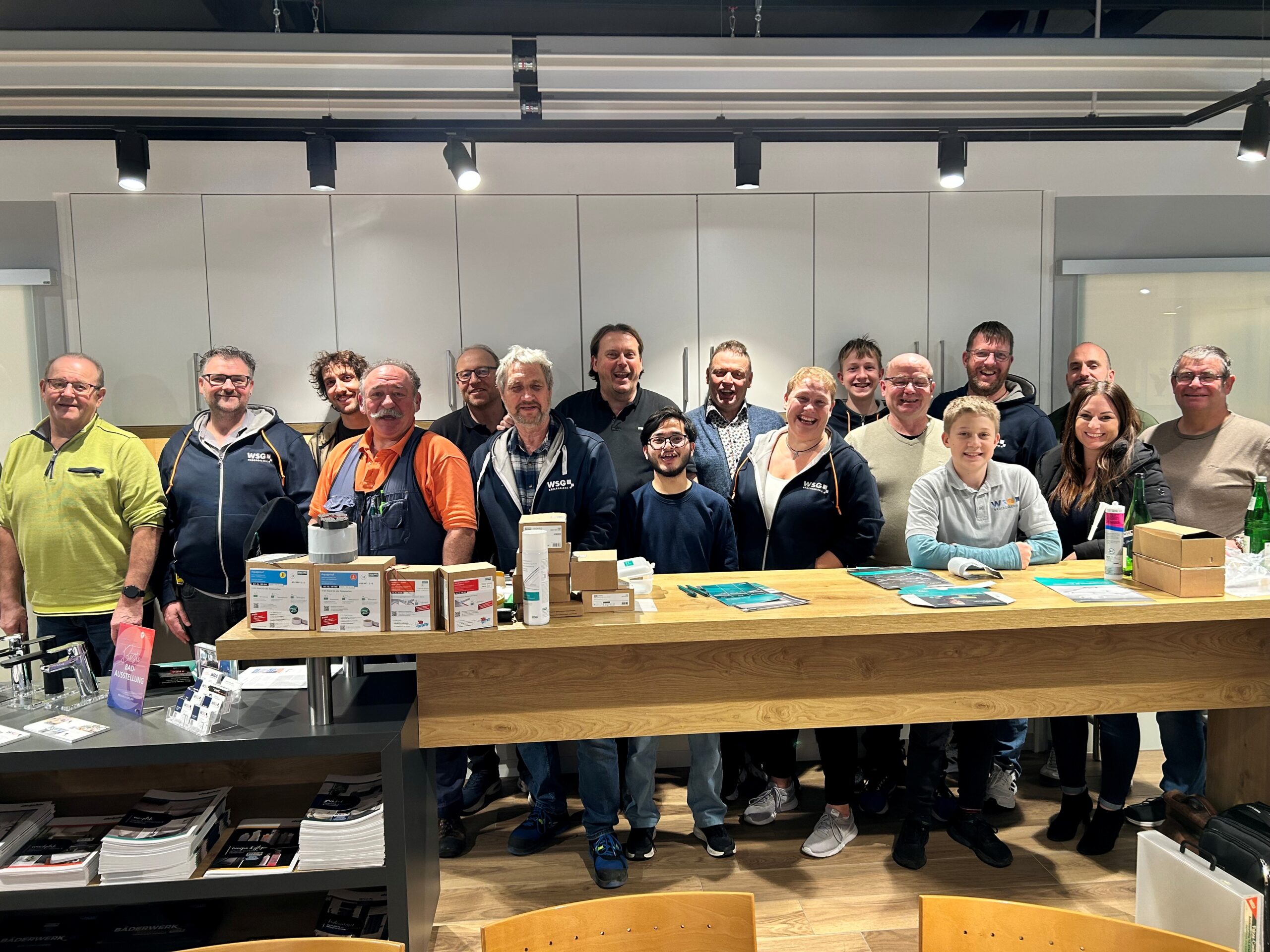 Nach Stärkung mit Pizza und äm Feierabend-Bierle hat Jörg wird gewohnt kompetent über die MEPA Aquaproof Abdichtung referiert, über Bohrlochabdichtungen und MEPA Dichtmanschetten. Einen Einblick gabs auch in die Neuheiten 2025, gezeigt auf der Weltleitmesse ISH in Frankfurt. Michael hat Details zur genauen DIN Norm ergänzt und die Vorschriften vor allem zu Abdichtungsarbeiten genau beschrieben.