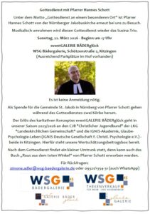 eventGALERIE BÄDERglück – Herzliche Einladung zum BÄDERglück-Gottesdienst zum zweiten Mal mit Pfarrer Schott