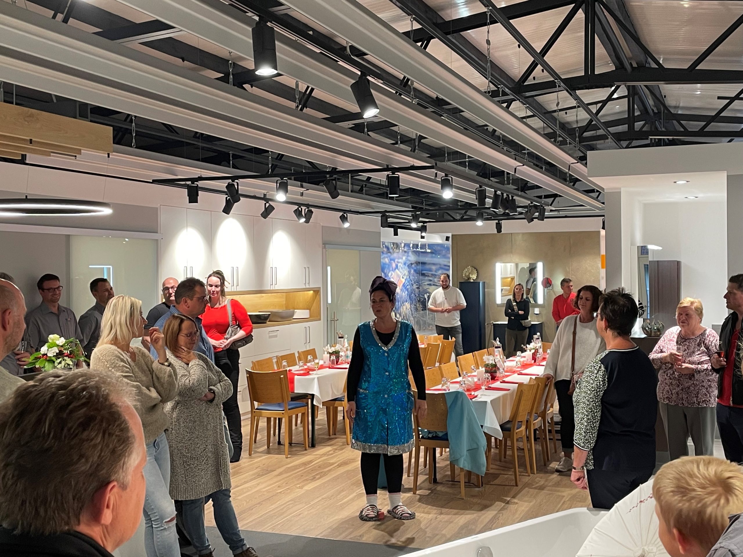 Unseren Japanischen Abend mittlerweile 4.0 mussten wir bißle umplanen – die Marketing-Grande Dame Petra Sujatta des Herstellers TOTO ist leider krank geworden und wir haben kurzfristig einen Showact der fränkischen Spitzenklasse aus dem Hut gezaubert: Die fränkische Putzfraaa Ines Procter aus Leinach hat unner Bäderglück hier kräftig aufgewirbelt und sehr unterhaltsam, glitzernd, glänzend und kurzweilig diesen Abend umrahmt.