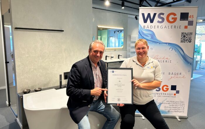 Wir freuen uns über die Ehrung „45 Jahre WSG“ der Industrie- und Handelskammer Würzburg-Schweinfurt, überreicht durch den netten Pressesprecher Radu Ferendino. Hier der Auszug der IHK-Pressemitteilung fürs Magazin „Wirtschaft in Mainfranken“: WSG Bädergalerie feiert 45 Jahre Erfolgsgeschichte in Kitzingen Die […]