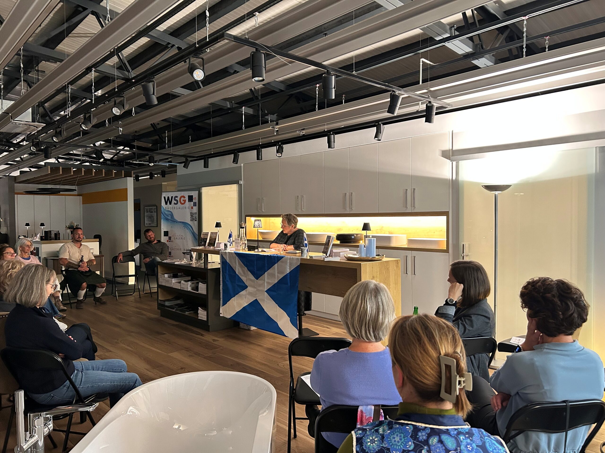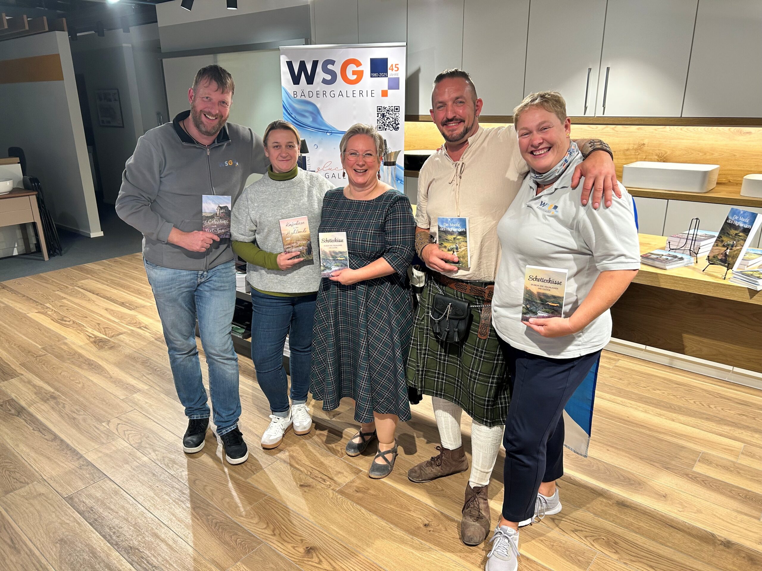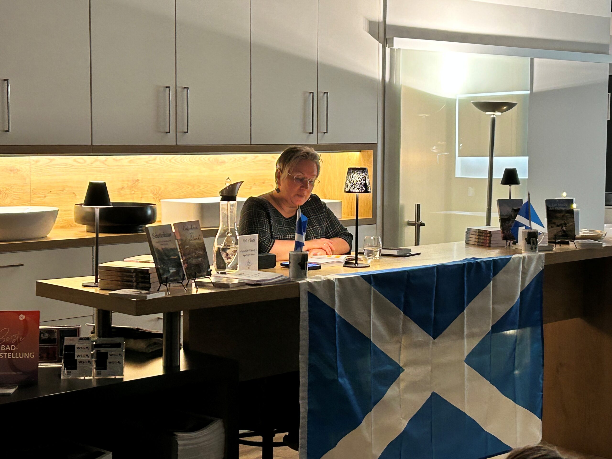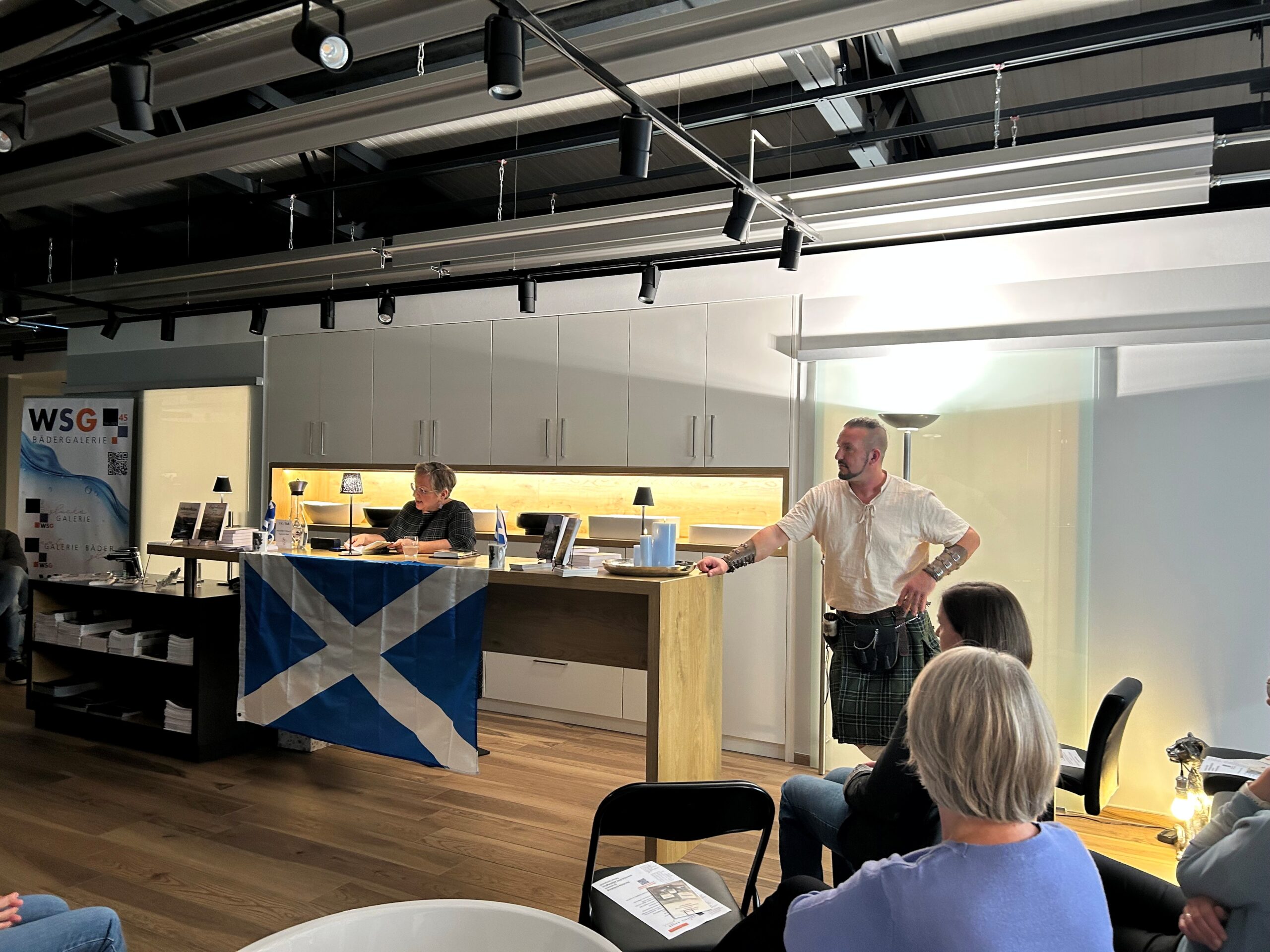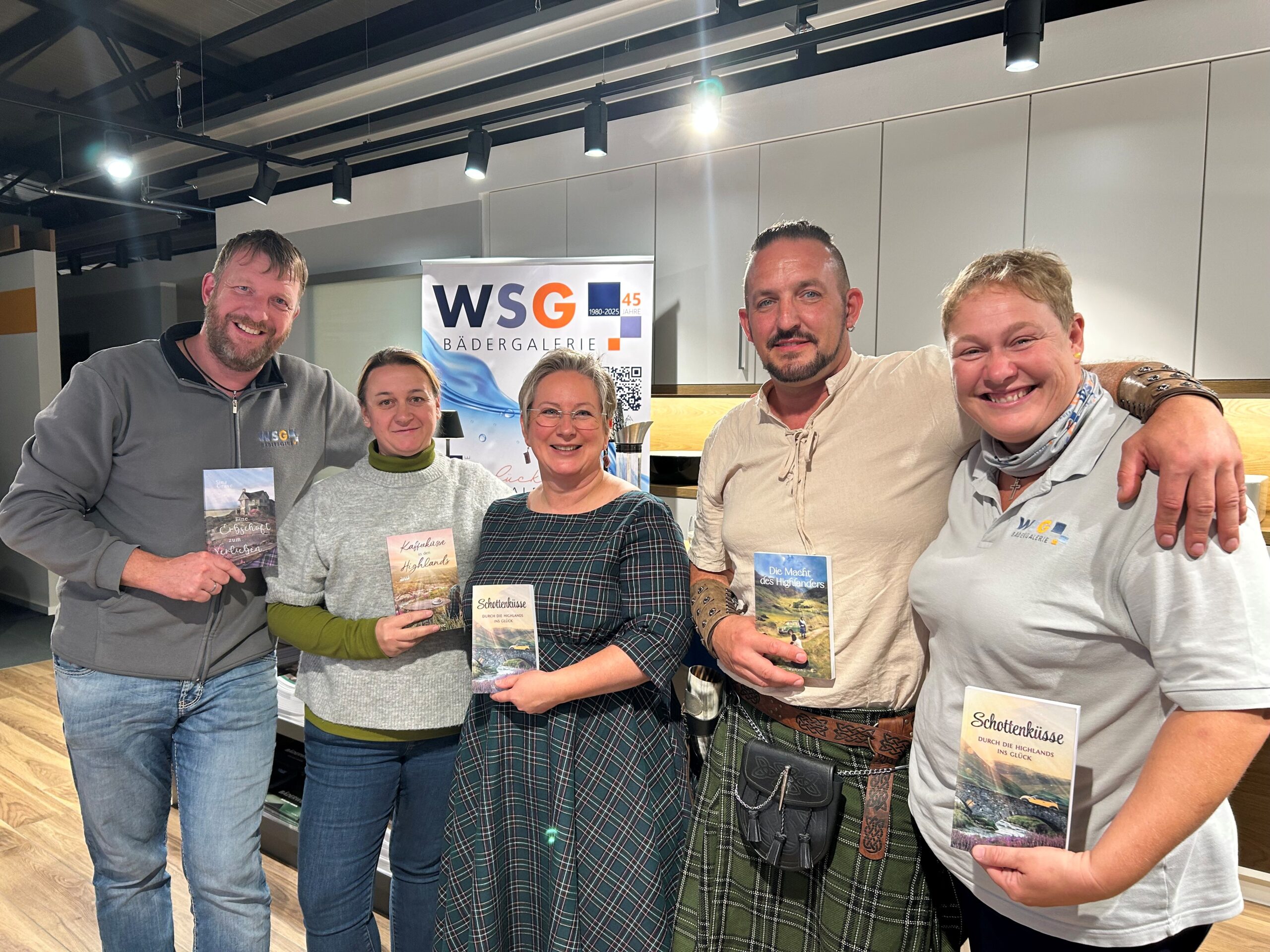 Sina Grave back again – sie war gestern erneut in unserer eventGALERIE BÄDERglück, hat mit ihrer wundervollen Stimme aus dem vierten Werk „Schottenküsse – Durch die Highlands ins Glück“ gelesen und wieder tiefe Einblicke in die Arbeit einer Autorin gegeben. Mit dabei war natürlich auch wieder der fränkische Highlander Marcel mit Ehefrau Syndi alias Rosie 😉. Rundum ein toller Abend, siehe auch unsere Bildergalerie. Ganz liebsten DANK Euch Dreien!!!