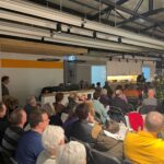 Mit dem Lied „Herr, wir bitten komm und segne uns“ und einem Segensgebet wurde die „BÄDERglück-Gemeinde“ eingestimmt, die Bibelworte der Seligpreisungen und der Hinweis auf Pfarrer Schotts Taufspruch aus Philipper 4 „Freuet euch in dem HERRN allewege! Und abermals sage ich: Freuet euch!“ haben den Weg für eine tolle Predigt (auf der nach seinen Worten längsten Kanzel der Welt) geebnet – „Freude und Humor“ als Christenmenschen auch im Gottesdienst, nicht nur, aber ein bißchen mehr davon würde er sich wünschen. Neben vielen Kirchen-Witzen und auch nachdenklich stimmenden Worten performte Pfarrer Schott seine umgedichteten Lieder: Aus „Aber bitte mit Sahne“ von Udo Jürgens wurde „Darauf bitte ein Amen“, Gottes Geschenke an die Menschen fanden sich im beliebten Lied „Halleluja“ von Leonhard Cohen und über Menschen, bei denen der liebe Gott einfach n bißle nachhelfen muß, damit mer sie mag sang er zur Melodie von „Weißt Du wieviel Sternlein stehen“. Der Spruch „Wenn ein Mensch nur Glauben hat, steht er in Gefahr, bigott zu werden. Hat er nur Humor, läuft er Gefahr, zynisch zu werden. Besitzt er aber Glaube und Humor, dann findet er das richtige Gleichgewicht, mit dem er das Leben bestehen kann.“ während der Predigt hat viele Menschen auch beim anschließenden Umtrunk noch bewegt und viele sind mit Pfarrer Schott ins Gespräch gekommen, auch weil sein Buch „Raus aus dem toten Winkel“ verkauft und von ihm signiert wurde.
