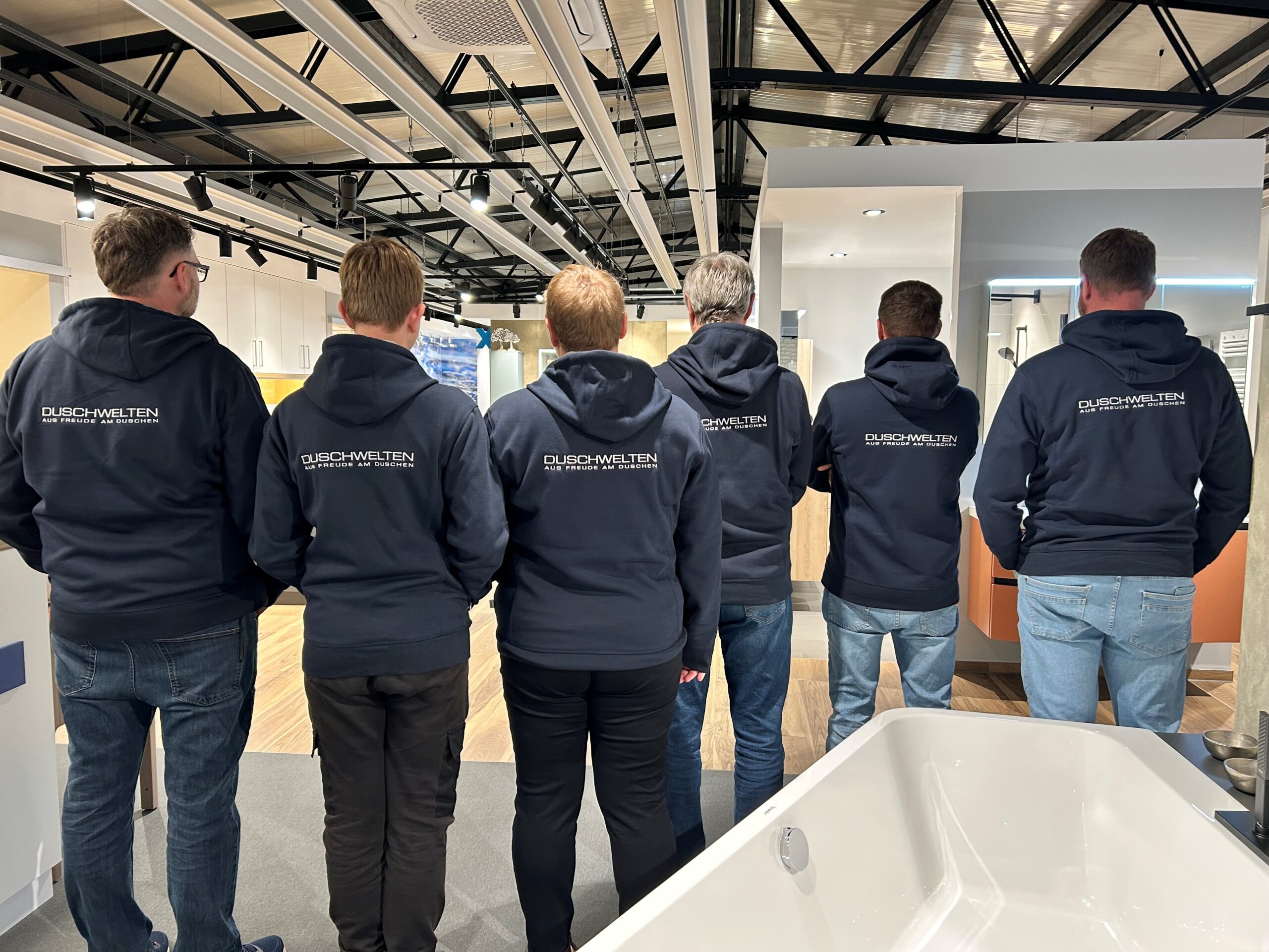 Dank unseres Duschabtrennungspartners DUSCHWELTEN flitzen hier lauter nette Leute in trendigen Kapuzenpullis herum.