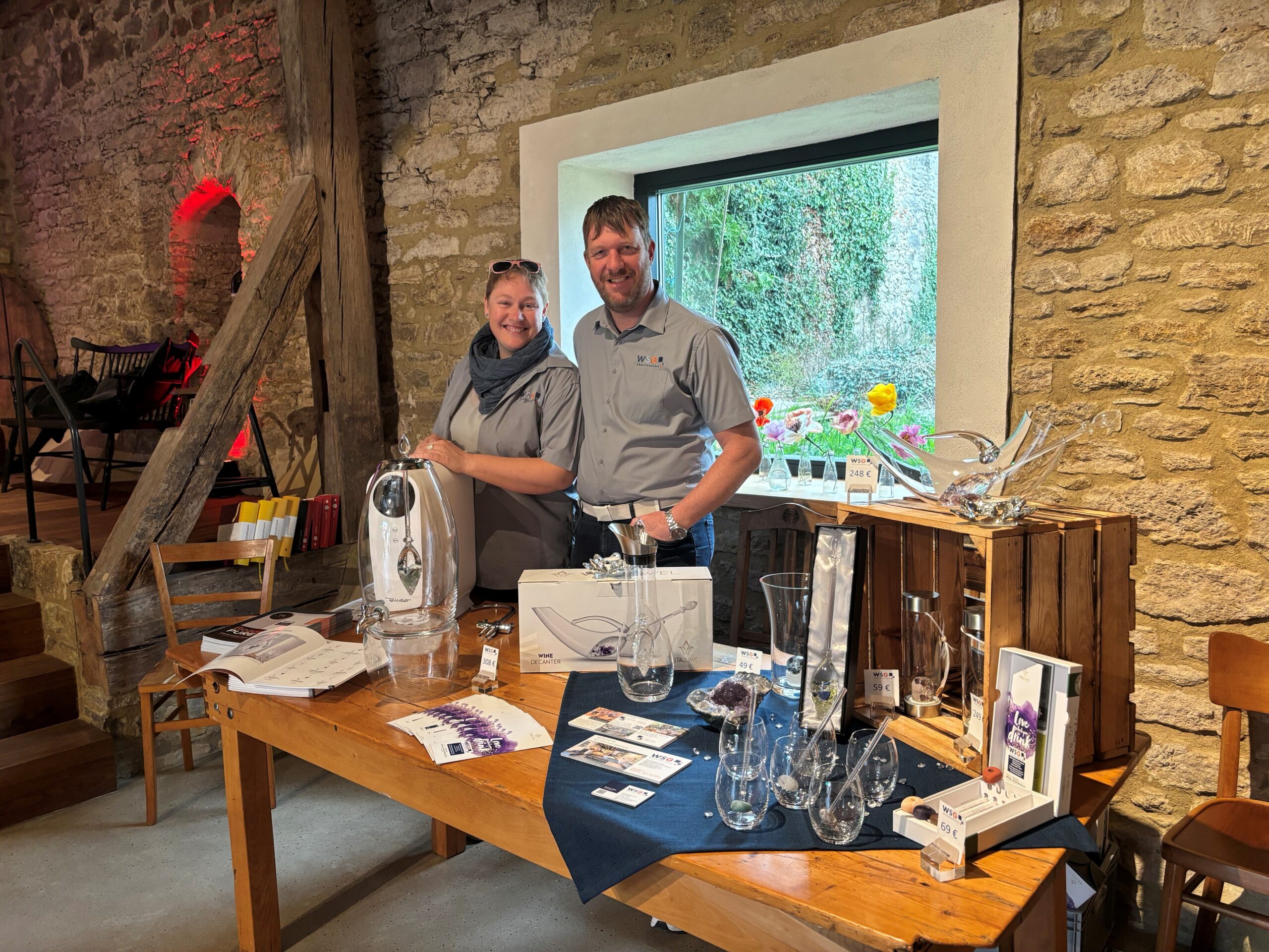 Unter dem Motto des Ilmbacher Hofs „Wir feiern die Freundschaft – 11 Freunde sollen es sein“ hatten wir viele WSG-Freunde an unserem Stand, das verkostete „reine“ Wasser im schönen VitaJuwel-Wasserspender schmeckte wie immer lecker und die GlasFlaschen und Karaffen mit den stylischen Edelsteinen ebenfalls von VitaJuwel zogen viele Blicke auf sich.